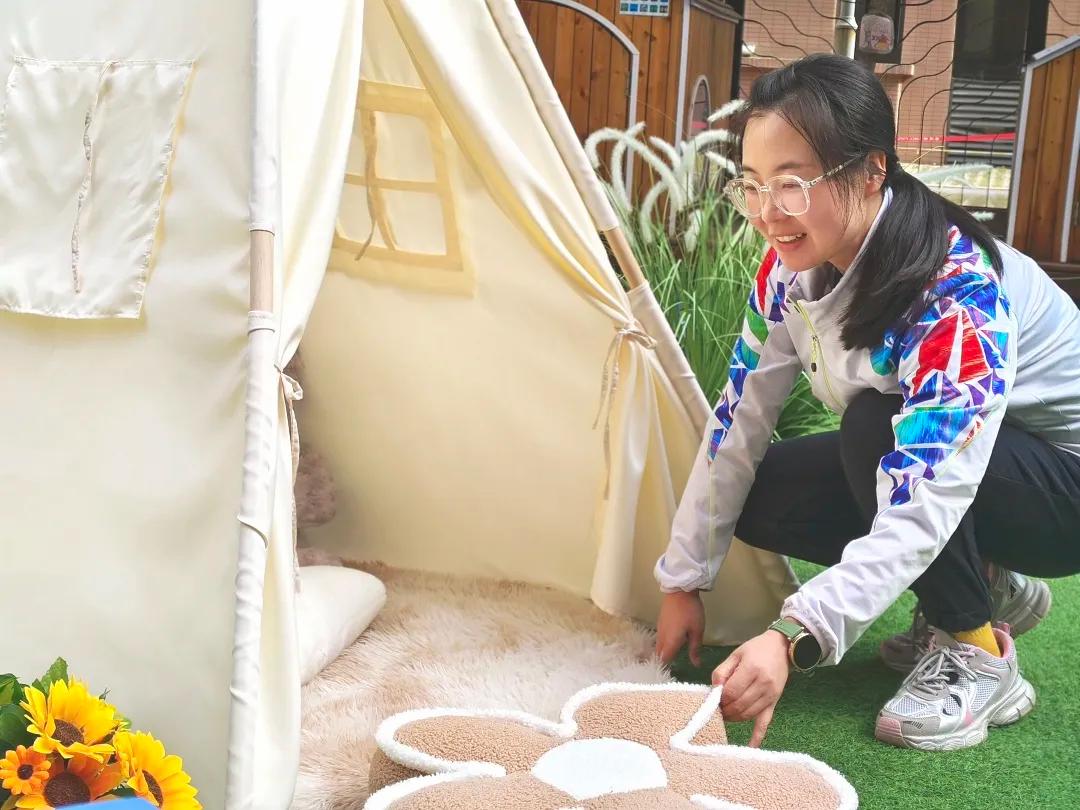 打气球、铺垫子、摆上心爱的小玩偶…… 一顶小小的帐篷,是孩子们撒欢的理由,一件童话衣裳,是满足孩子对故事憧憬的宝物,蓝天白云青草地,绘本故事小朋友,共赴一场阅读的盛宴。